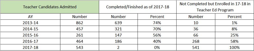 2017-18 Teacher Candidate Completion Rate