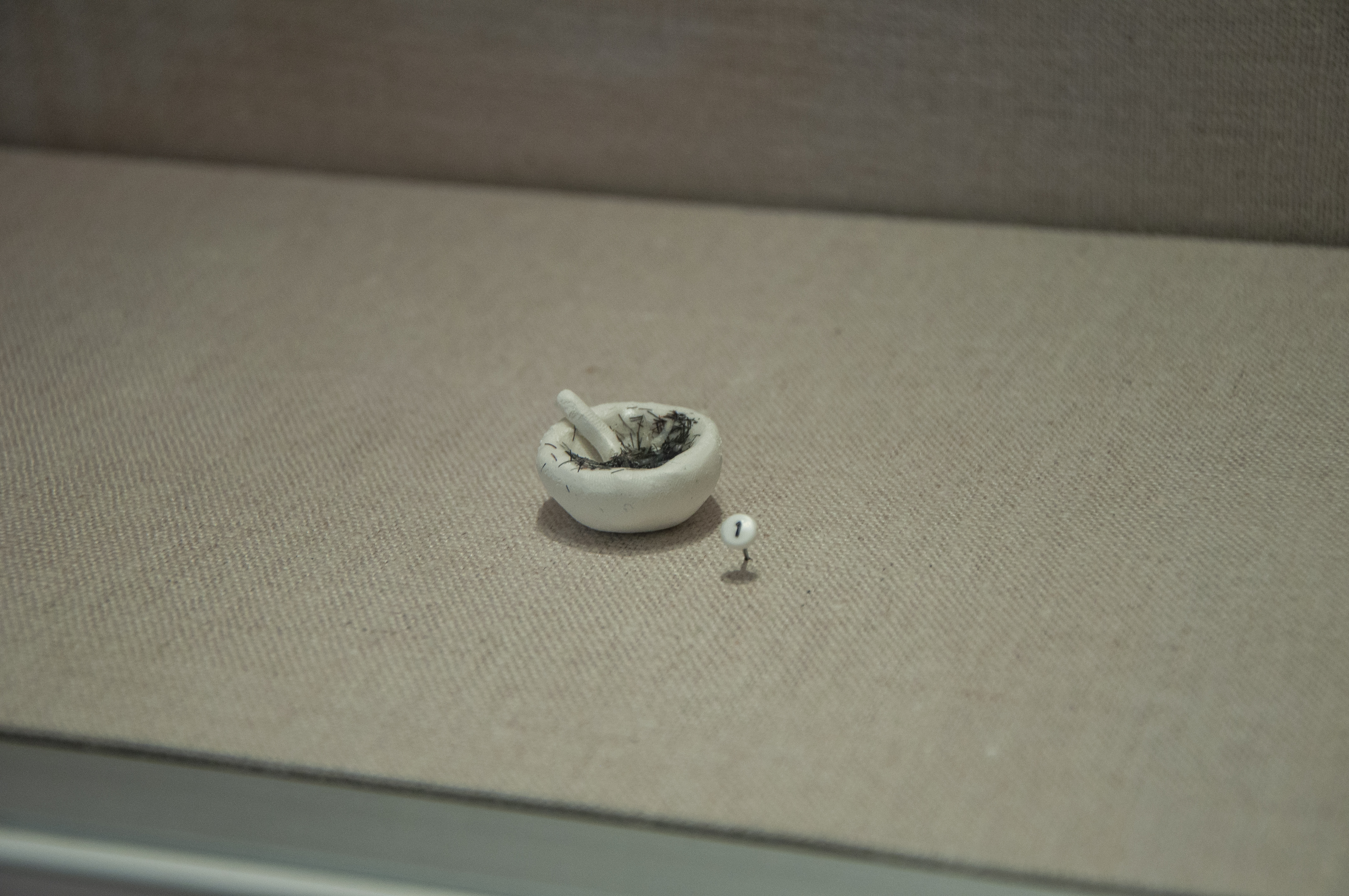 With all objects displayed in the exhibition sized at no larger than one inch in any dimension, students of the art department where tasked with creating captivating pieces at a small scale to be presented in the display case of the Bobby K. Marks Administration Building.